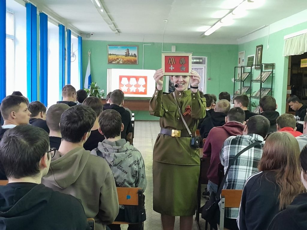 Молодому поколению рассказали об истории возникновения праздника, который связан с именем Святого Георгия Победоносца. Участники встречи услышали имена славных героев-орденоносцев времен Отечественной войны 1812 г., Первой мировой войны, Великой Отечественной войны 1941–1945 гг., узнали, за какие заслуги перед Отечеством можно было получить Орден Святого Георгия, Георгиевский крест, Орден Славы.